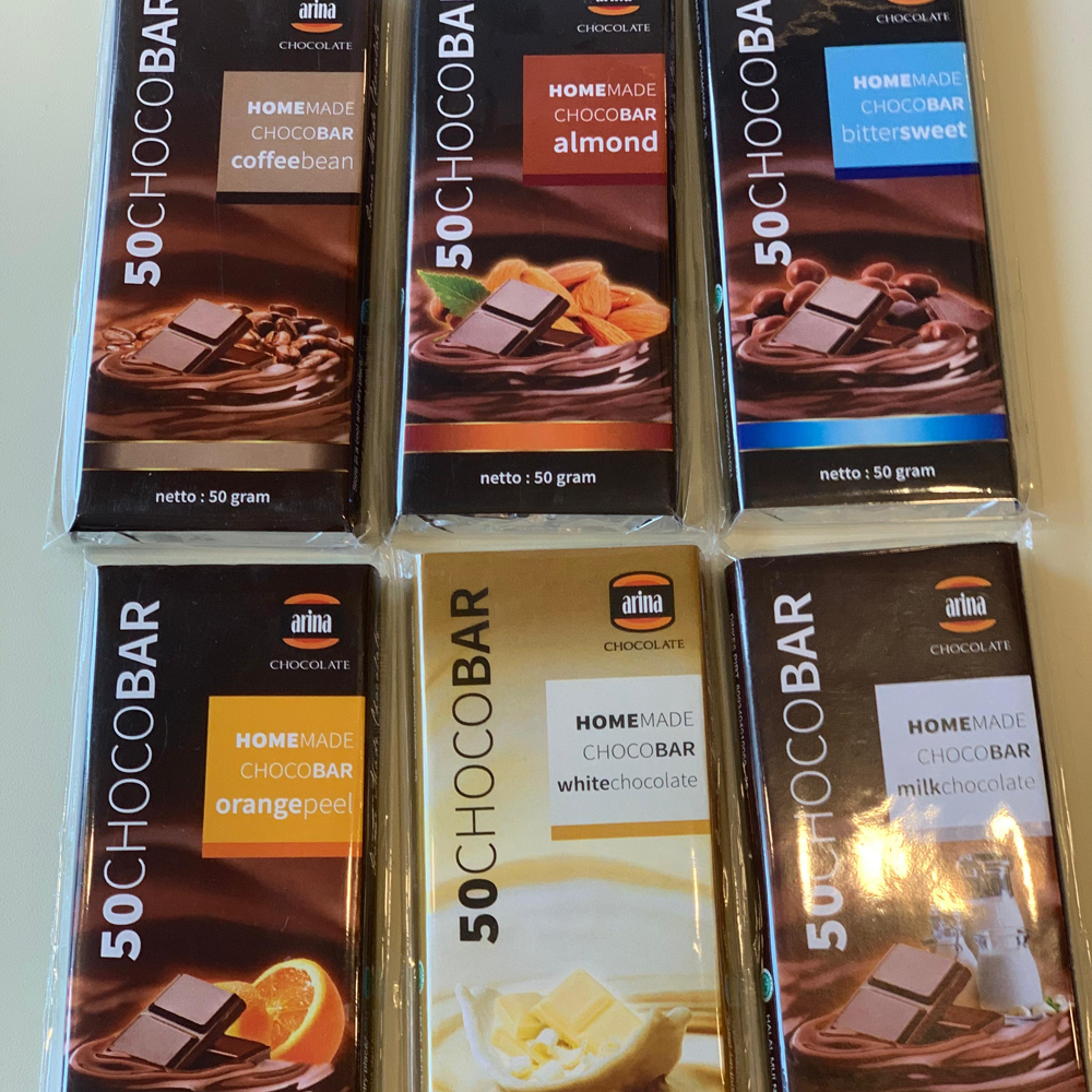Choco Bar 50gr (kopi,almond,BS,OP,white,milk)