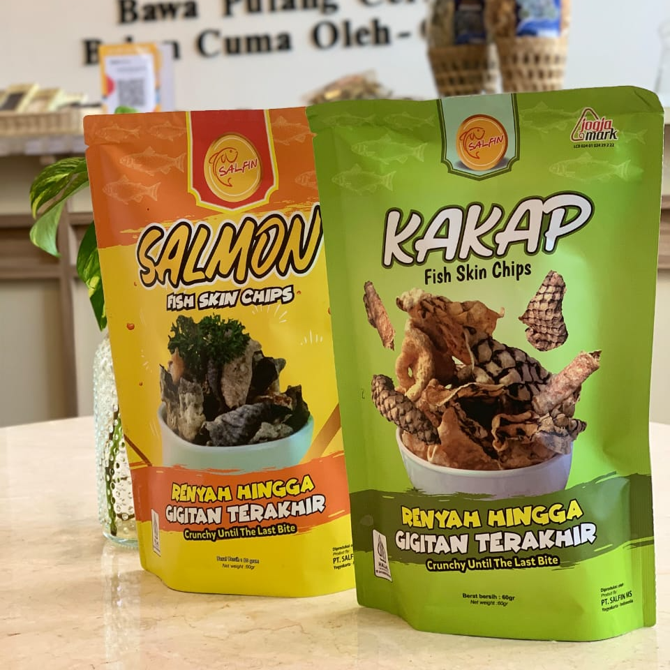 Keripik Kulit Ikan Salmon dan Kakap yang asik dinikmati sebagai pengganti krupuk, buat makan baso, mie, seblak, soto, dan sup. Mantul banget. Aman banget dikonsumsi anak-anak karena Salfin chips no msg, tanpa pengawet, dan tanpa pewarna buatan.