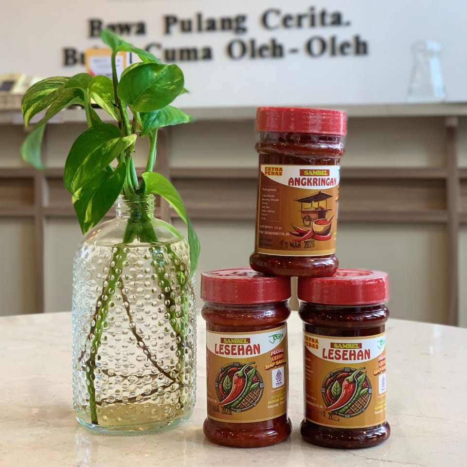 Sambal botol plastik dengan varian sambal lesehan dan sambal angkringan.